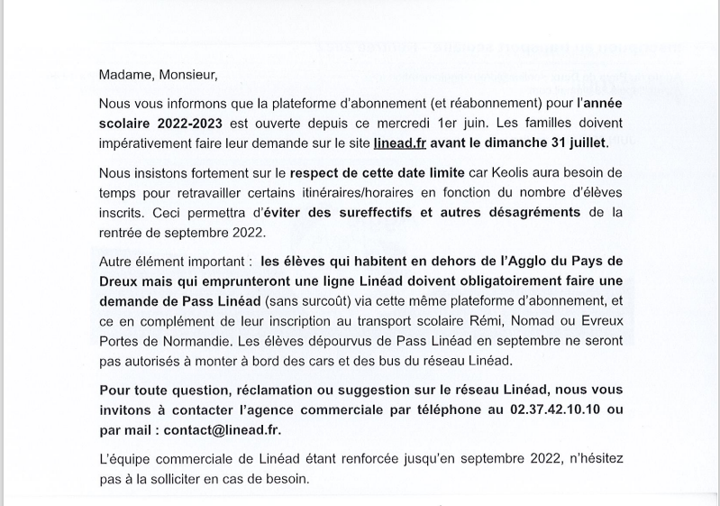L’inscription de votre ou vos enfants est à effectuer auprès des services de l’Agglo du Pays de Dreux.